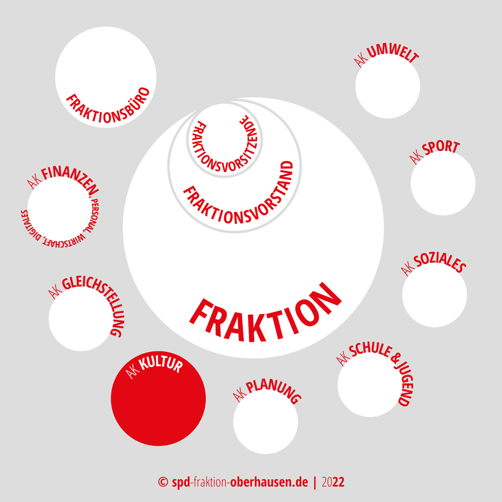 Der Arbeitskreis Kultur setzt sich zusammen aus den SPD-Rats- und Bürgermitgliedern des Kulturausschusses der Stadt Oberhausen. Hinzu kommen Mitglieder aus den drei Bezirksvertretungen und aus der Partei, soweit benannt. Leiter des Arbeitskreises Kultur ist der Stadtverordnete Axel Scherer.