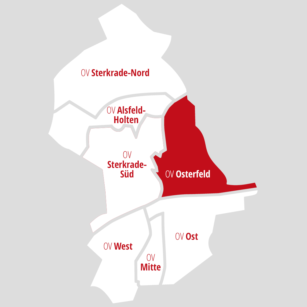 Im Stadtbezirk Osterfeld engagieren sich die Sozialdemokratinnen und Sozialdemokraten im gleichnamigen Ortsverein. Er umfasst die Kommunalwahlbezirke Klosterhardt-Nord, Klosterhardt-Süd, Osterfeld-Heide, Rothebusch und Osterfeld-Mitte. Der Ortsverein ist in der Wahlperiode 2020-2025 mit fünf Stadtverordneten im Rat vertreten, in der Bezirksvertretung Osterfeld stellt er ebenfalls fünf Mitglieder inklusive des Bezirksbürgermeisters.