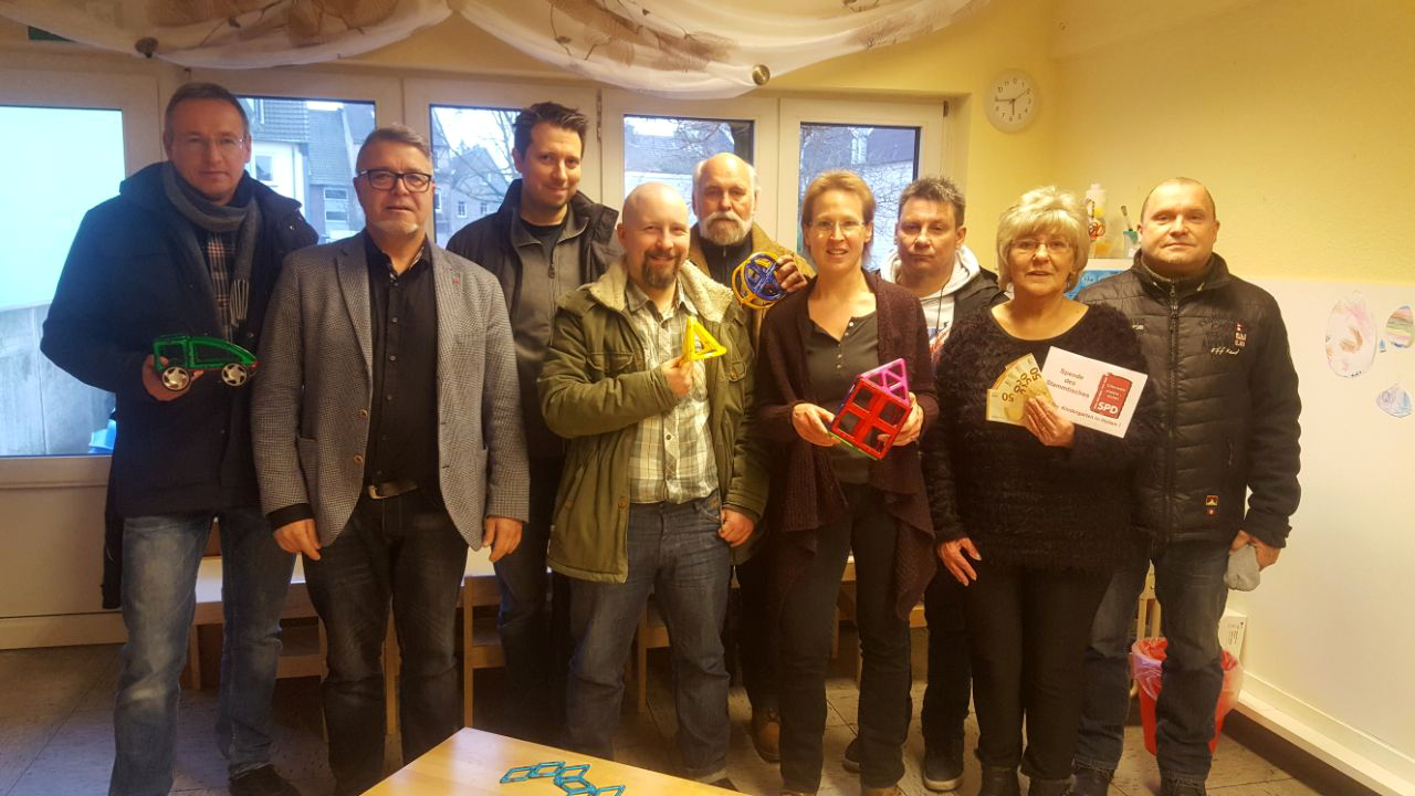 Am Freitag, den 2. März 2018, überreichte der SPD-Stammtisch des Ortsvereins Alsfeld-Holten dem Ev. Kindergarten Kirchenmäuse Holten den Gewinn ihres Fischstandes vom Holtener Weihnachtsmarkt am Kastell. Wie jedes Jahr verkauften die Mitglieder des SPD-Stammtisches frisch geräucherte Forellen und Fisch zu Gunsten sozialer Projekte in Oberhausen. Im Dezember 2017 erbrachte der Fischverkauf einen Erlös in Höhe von 250 Euro.