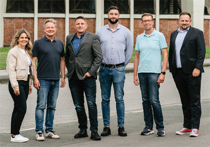 V.l.: Laura Lihr (Gesamtbetriebsratsvorsitzende OXEA), Thorsten Berg, Michael Adamzik (Betriebsratsvorsitzender OXEA Werk Ruhrchemie), Dennis Lotz, Thomas Frese (Stellvertretender Betriebsratsvorsitzender Ruhrchemie und stellvertretender Gesamtbetriebsratsvorsitzender OXEA), MdL Freddy Cordes | Bildnachweis: Julia Meya